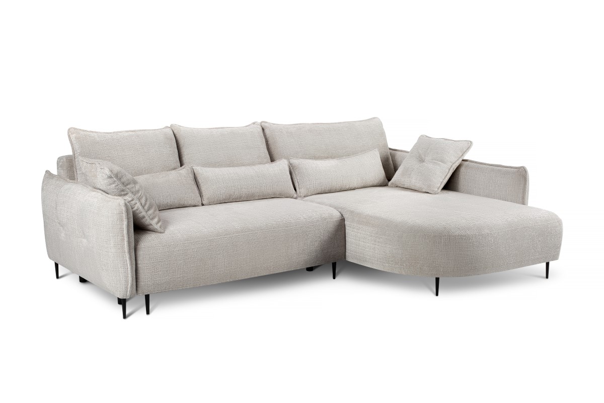 Narożnik ALICANTE to komfortowy mebel w nowoczesnym designie. Zaokrąglona otomana nadaje mu niebanalnego wyglądu. Narożnik wyposażony jest w funkcję spania oraz pojemnik na pościel. Doskonale sprawdzi się w dużym, przestronnym salonie o nowoczesnej stylistyce.